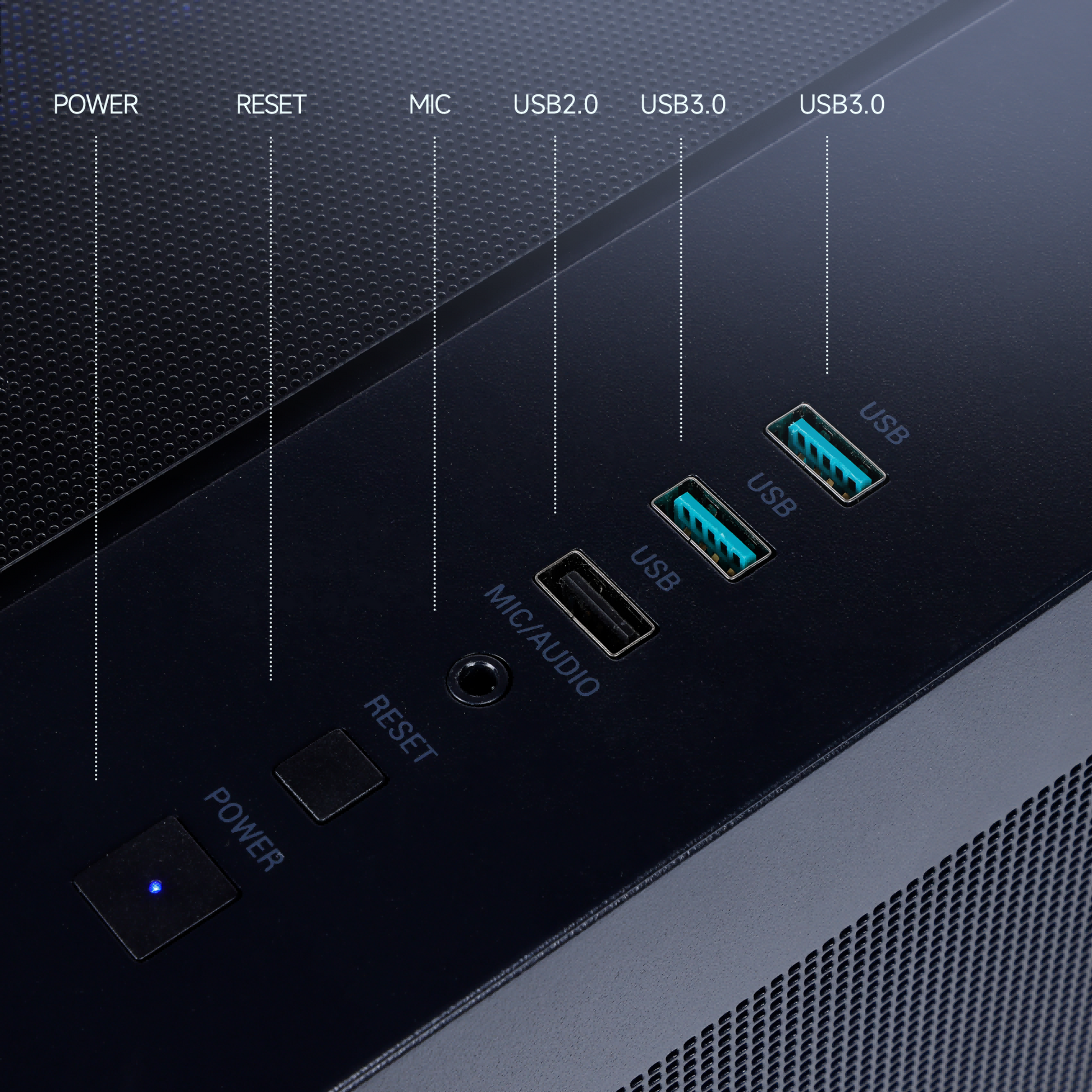 • 【Connectivity】:Front - 2 x USB 3.0 | 1 x USB 2.0 | HD-Audio & Mic ; Rear - 4 x USB 3.2 Gen 2 | 4 x USB 2.0 | 1×DisplayPort,1×HDMI | 1×RJ45