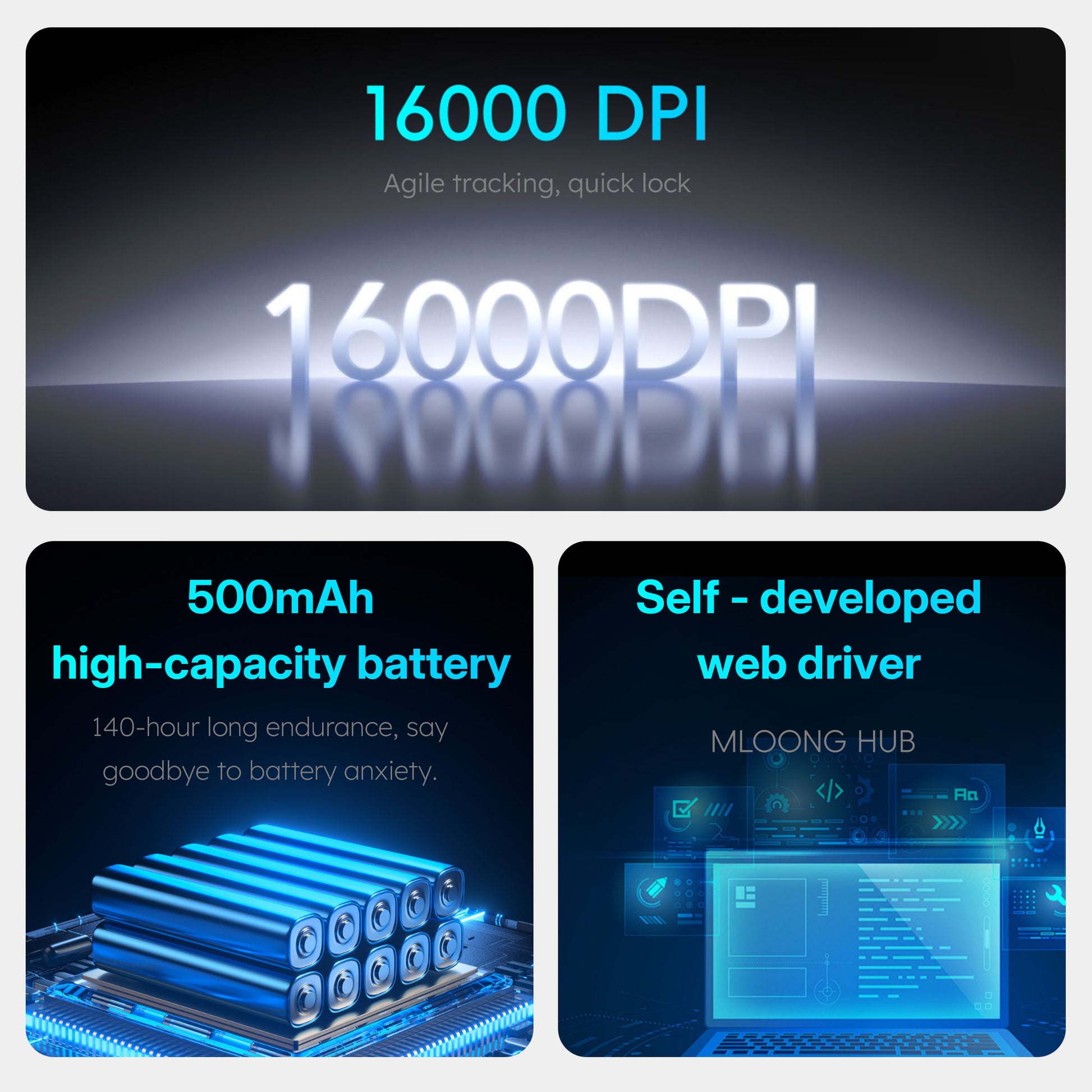- This PC gaming mouse features the MLOONG S1 sensor, delivering exceptional precision and responsiveness with tracking speeds exceeding 300 IPS and sensitivity up to 16,000 DPI.
