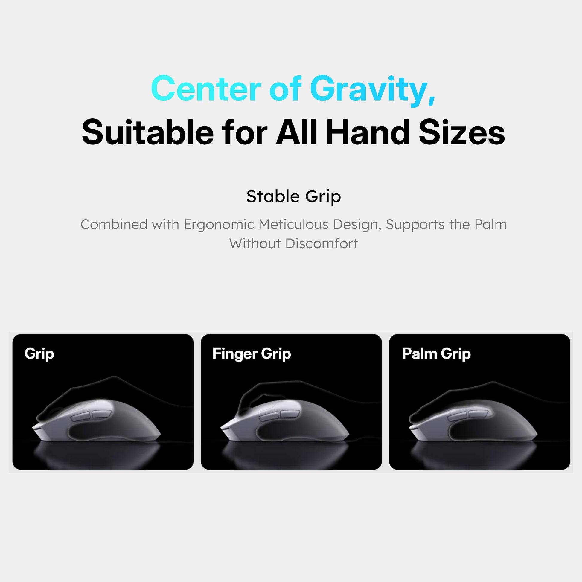 - Its lightweight symmetrical design weighs just 56 grams. The low-profile shape with a rounded back provides a comfortable grip and flexible control, accommodating various gaming styles.