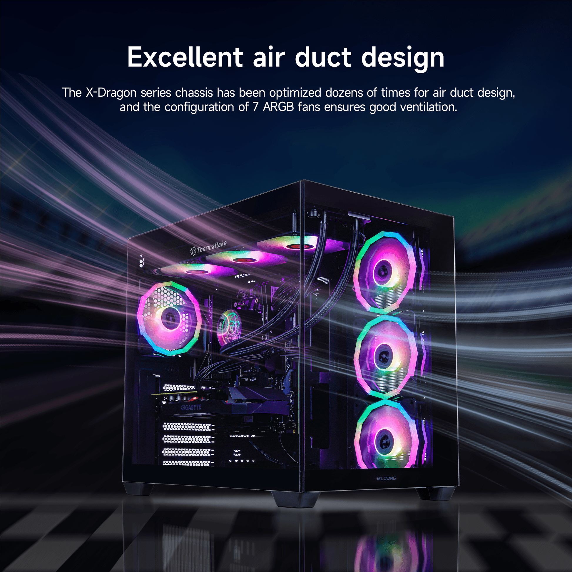 • Cooler & Power:ARGB colorful 360mm liquid cooling PC & 7 ARGB System Color Adjustable Ring Fans 850W 80+ Bronze Certified Power Supply.